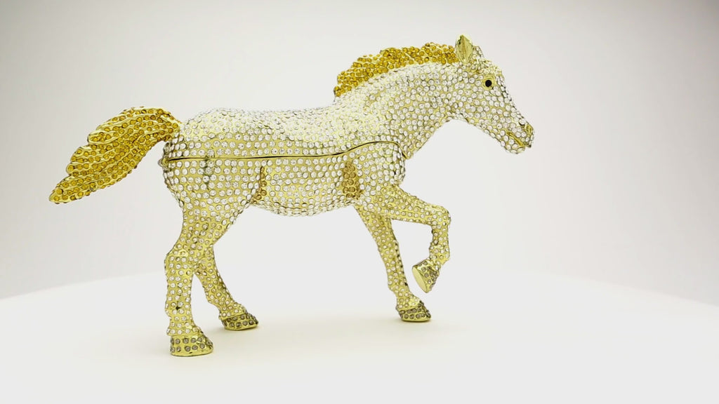 Large Golden Horse Decorated with White Crystals